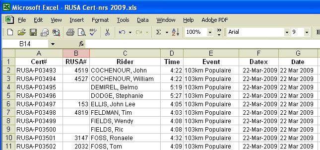 for each RUSA member number you entered. If you mistype a RUSA number, credit